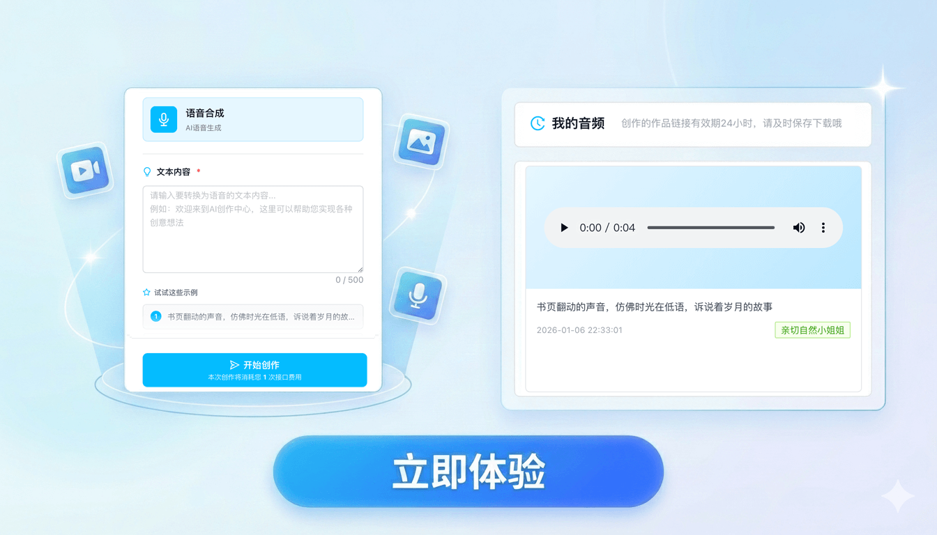 | audio_url | string | 生成的语音文件地址。链接有效期为24小时,请及时下载并保存。 |