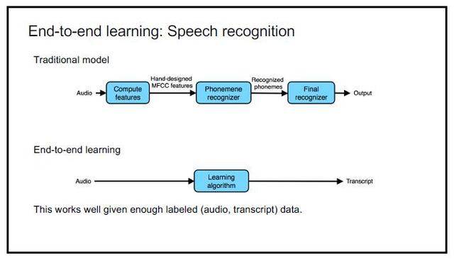 端到端学习的思路则非常简单:音频→学习算法→转录结果;