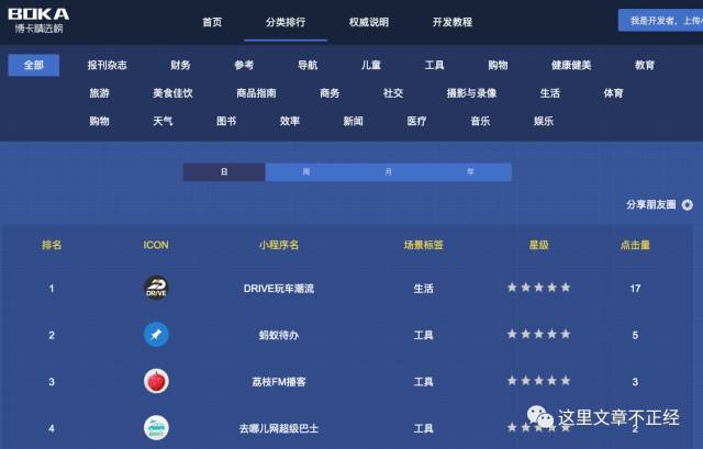 博卡君和爱范儿一样在第一开始内测的时候就获得了资格,而博卡君采用了另一条路,第一时间放出了小程序开发教程,同时建立QQ群和微信群,聚集了第一批核心的小程序开发者。现在推出小程序优选榜,也是顺理成章。