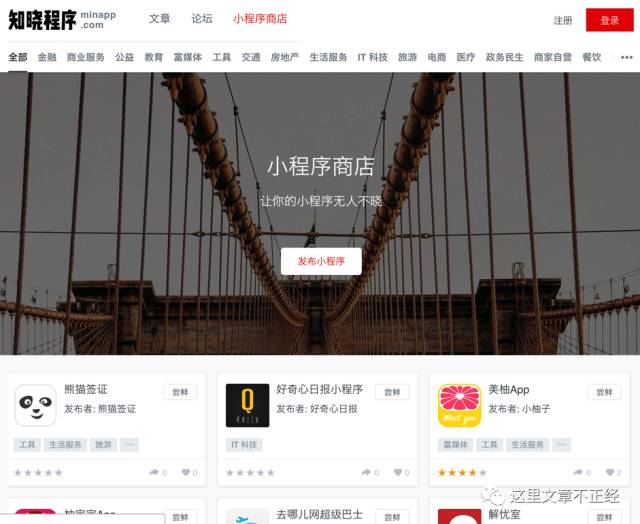 当大多数人还在争论小程序到底是否靠谱的时候,这么多先行者已经开疆拓土巩固地位。小程序上线了,观望的人在进行投入还来得及么?更多信息请关注公众号【这里文章不正经】,给你带来不一样的视角,可以和我讨论交流小程序的那些事,我的个人微信号lovemin3825002,欢迎交流。
