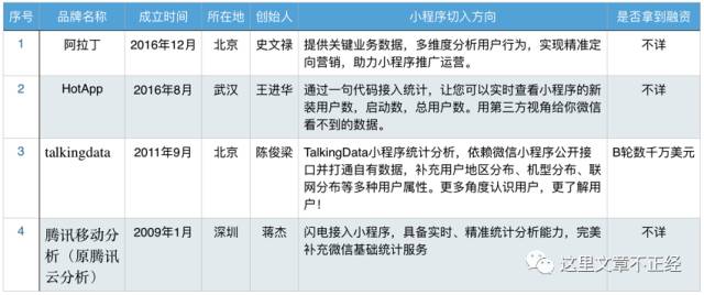 当年安卓、iOS刚刚兴起的时候很少人投入做数据统计,后来随着不少的数据统计公司被投资,还有一些被收购,开始有大批的人进入到数据统计这个细分领域。时过境迁,当小程序公布后第一时间嗅觉敏锐的公司迅速布局这个领域。