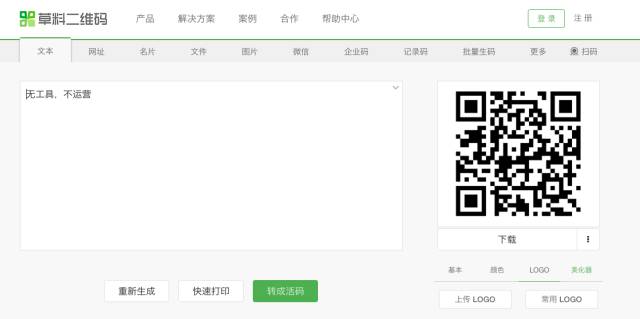 草料二维码既有面向个人用户的免费版,也有面向企业用户的付费版。除草料二维码外,其它常用的二维码生成器还有二维工坊和微微在线二维码生成器。