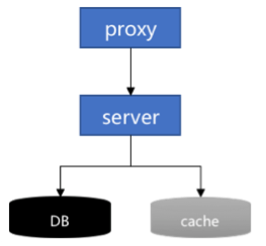 该系统由接入层、逻辑服务层、存储层与缓存构成。Proxy处理请求接入,Server承载主要的业务逻辑,Cache用于缓存库存数量、DB则用于数据持久化。