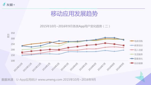 Ø 图像美化、教育培训、电商导购类应用呈小幅增长趋势。