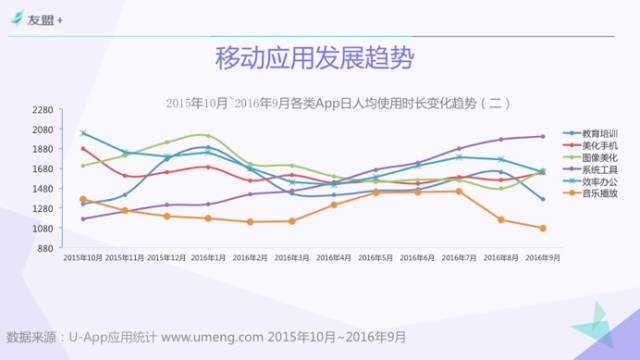 Ø 系统工具类App用户日均使用时长呈现不断增长趋势;