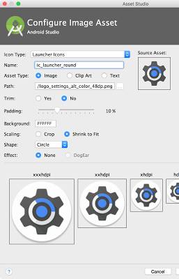 如果您要向您的应用添加应用快捷方式或圆形启动器图标,您可以使用 Android Studio 的内置 Image Asset Studio,快速创建符合 Material Design 指导原则的不同尺寸的图标。您可以在适用于 API 级别 25 的 Google API 模拟器上测试这些圆形图标,Google API 模拟器包含对圆形图标和最新 Google Pixel 启动器的支持。