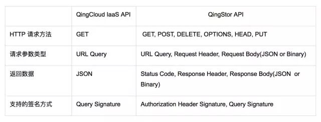 这里将 QingStor API 和 QingCloud IaaS 的 API 做个简单比较: