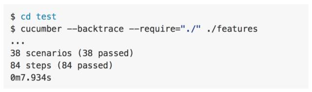服务测试中我们采用 Cucumber ,它是一个 BDD (Behaviour-Driven Development ) 工具。Cucumber 会读取通过自然语言描述的测试场景和数据,然后结合不同的测试实现去验证是否通过。Cucumber 可以被称作是一种测试方式,基本上每种语言都有它的实现。