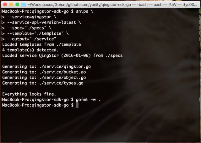使用 Snips 开发 QingStor Go SDK